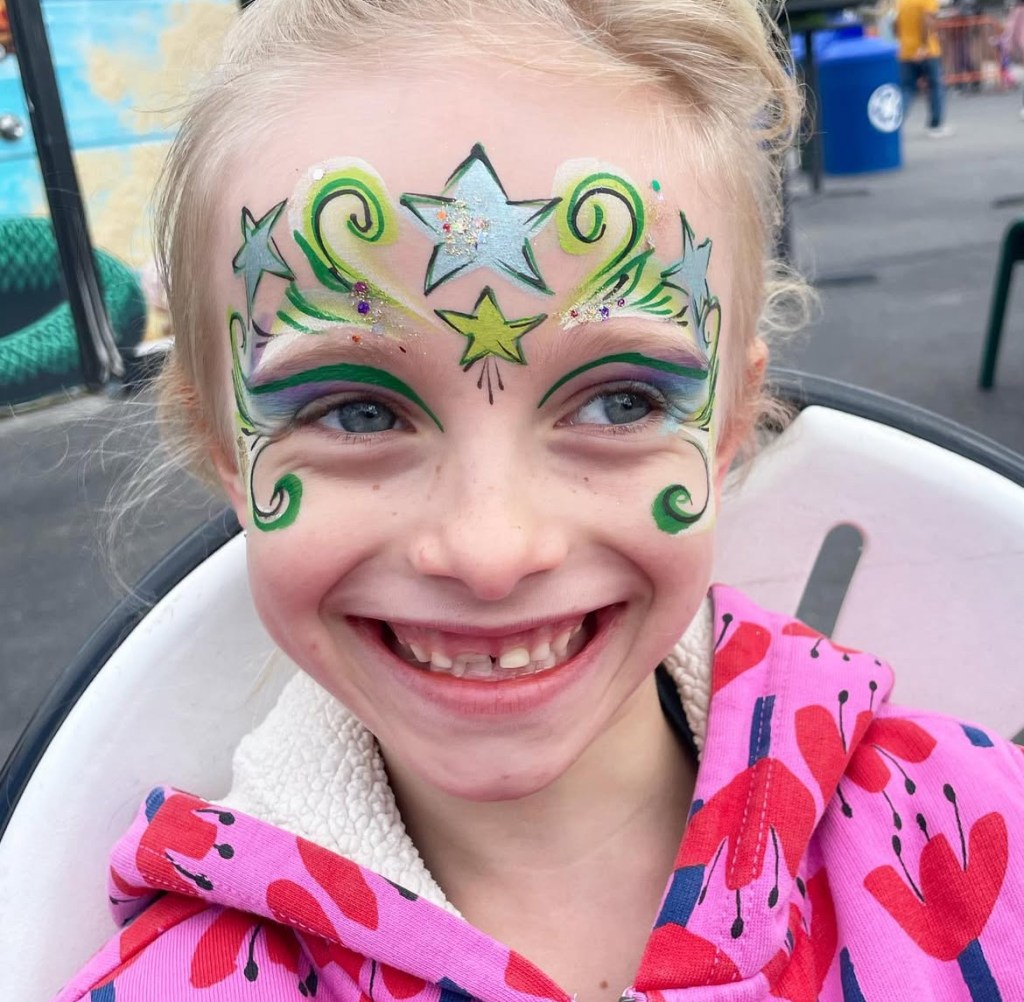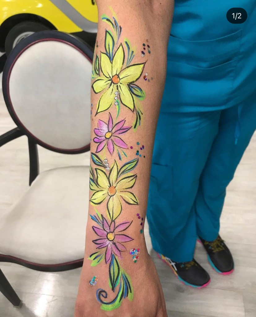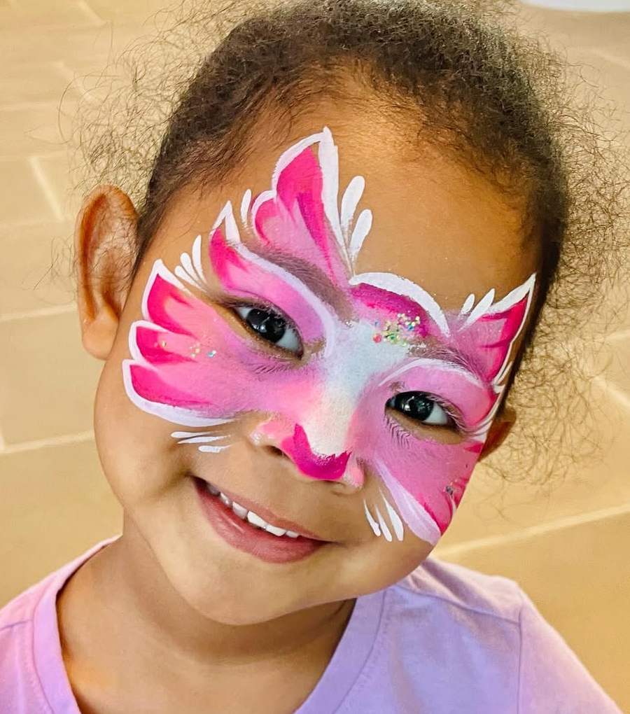 I have been face painting at events for over 10 years. I grew up in a family of creative event entertainers and the art of face painting is a very special part of my life. I am honored to have the opportunity to spread artistic joy and to be able to empower people to express themselves through this sweet art form.